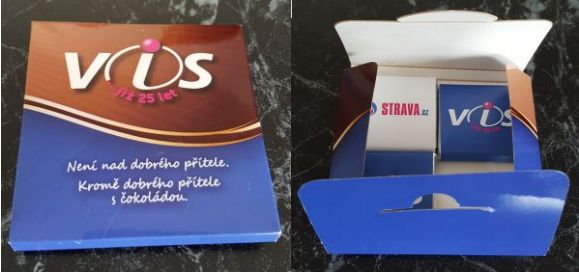 Čokoládová sada 4 x 5 gramů v papírové skládací krabičce,